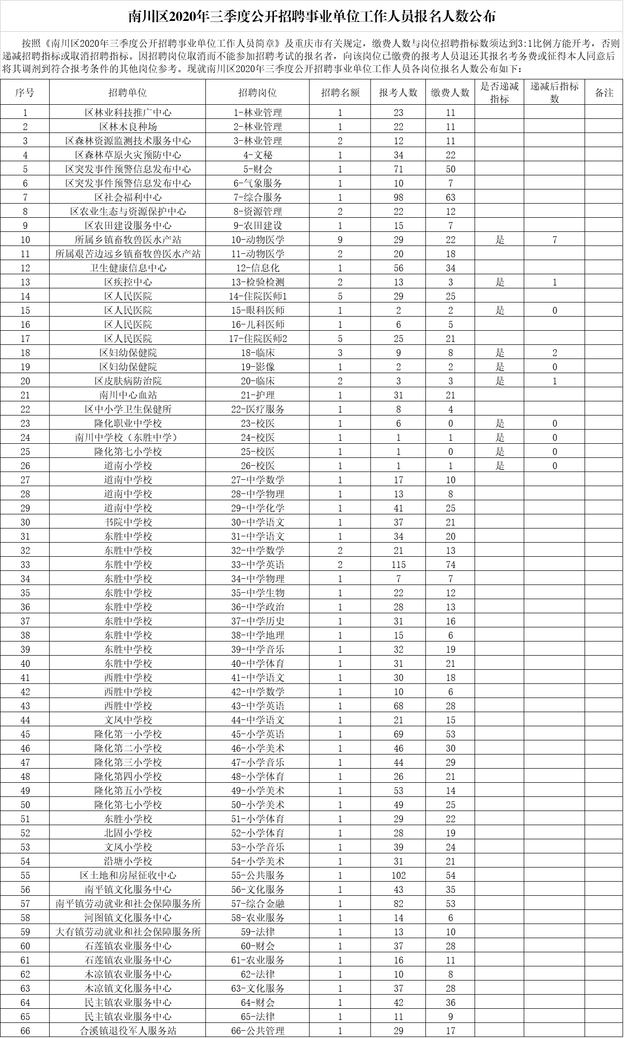 原標(biāo)題:南川區(qū)2020年三季度公開(kāi)招聘事業(yè)單位工作人員報(bào)名人數(shù)公布