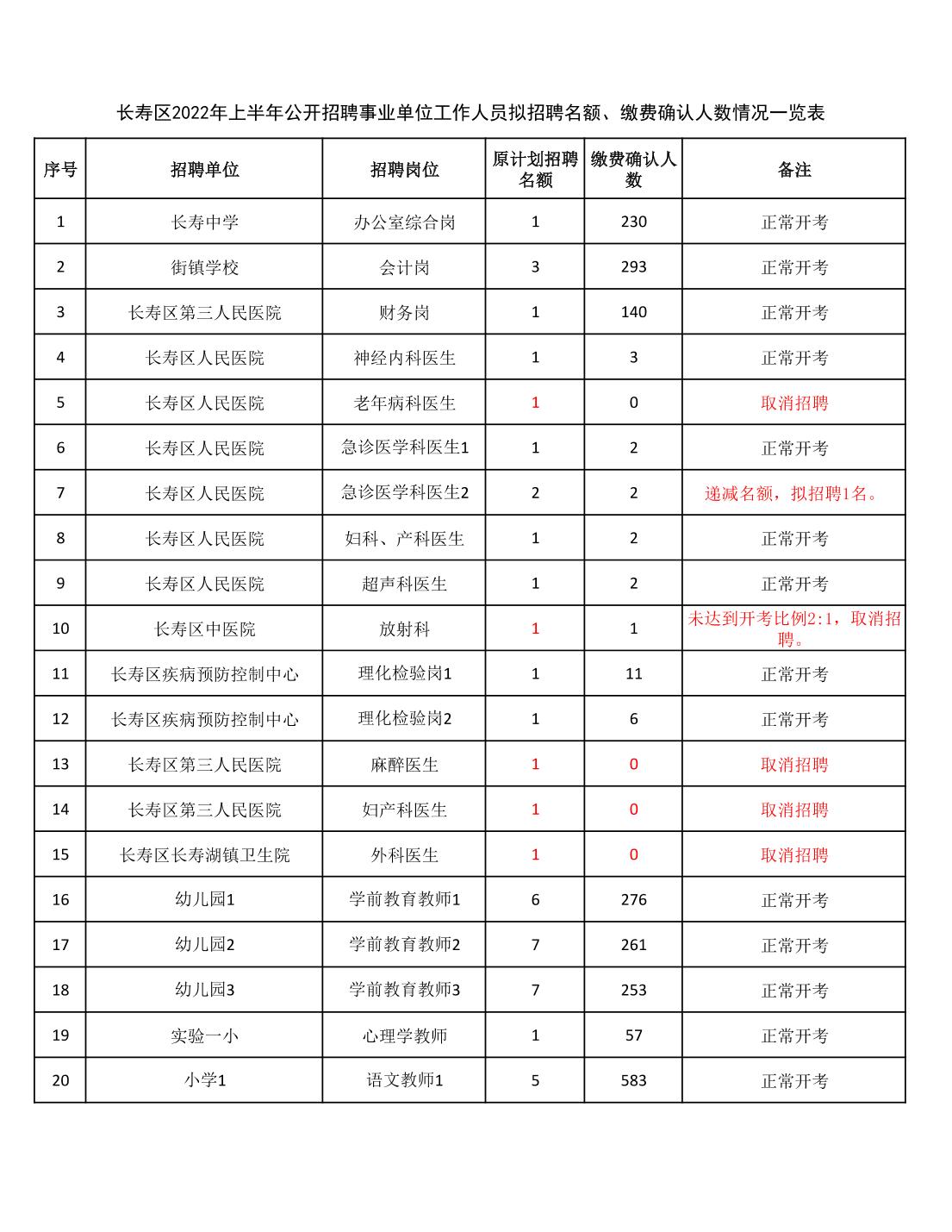 原標(biāo)題:長壽區(qū)2022年上半年公開招聘事業(yè)單位工作人員擬招聘名額、繳費(fèi)確認(rèn)人數(shù)情況一覽表