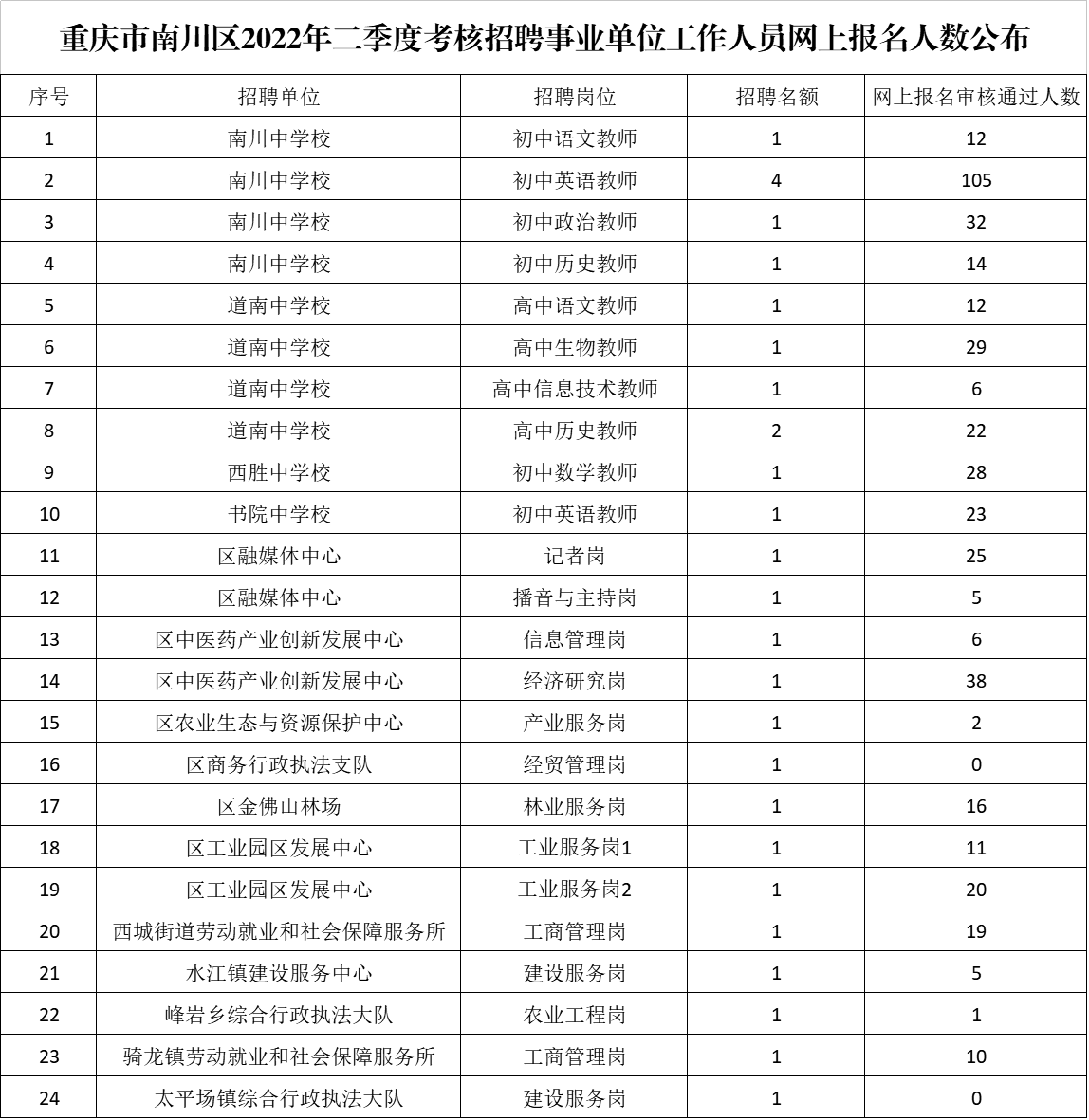 附件:重慶市南川區(qū)2022年二季度考核招聘事業(yè)單位工作人員網(wǎng)上報名人數(shù)公布
