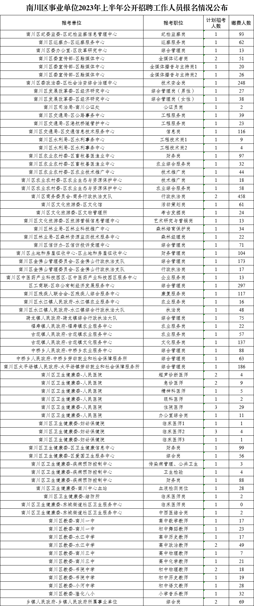 原標(biāo)題:南川區(qū)事業(yè)單位2023年上半年公開招聘工作人員報名情況公布
