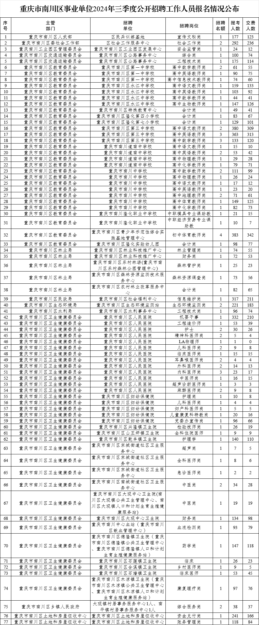 原標題:重慶市南川區(qū)事業(yè)單位2024年三季度公開招聘工作人員報名情況公布