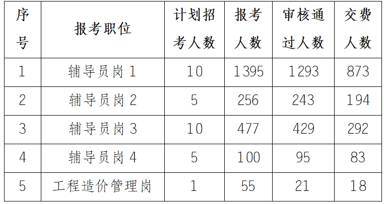 各位考生:現(xiàn)將我校2024年公開招聘事業(yè)單位工作人員報考情況予以公布: