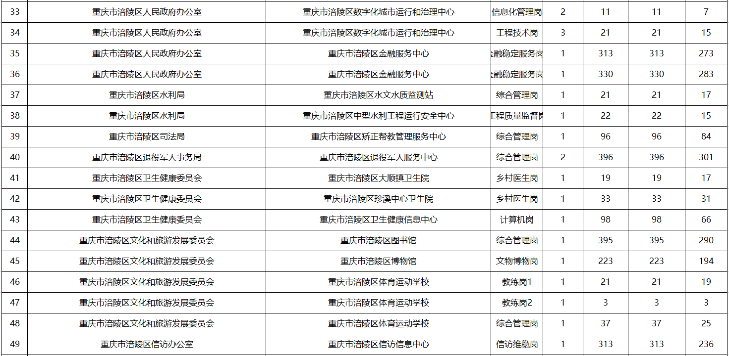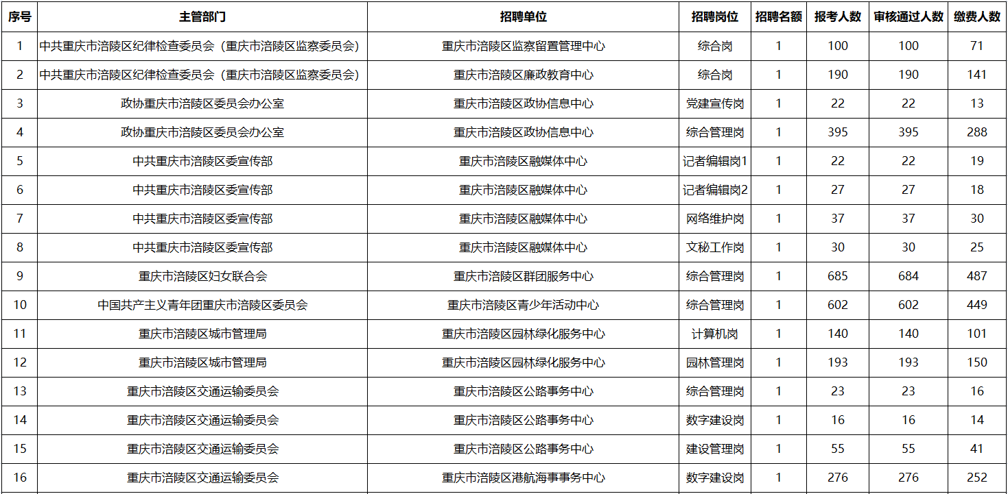 原標題:重慶市涪陵區(qū)事業(yè)單位2024年第四季度公開招聘工作人員報名統(tǒng)計