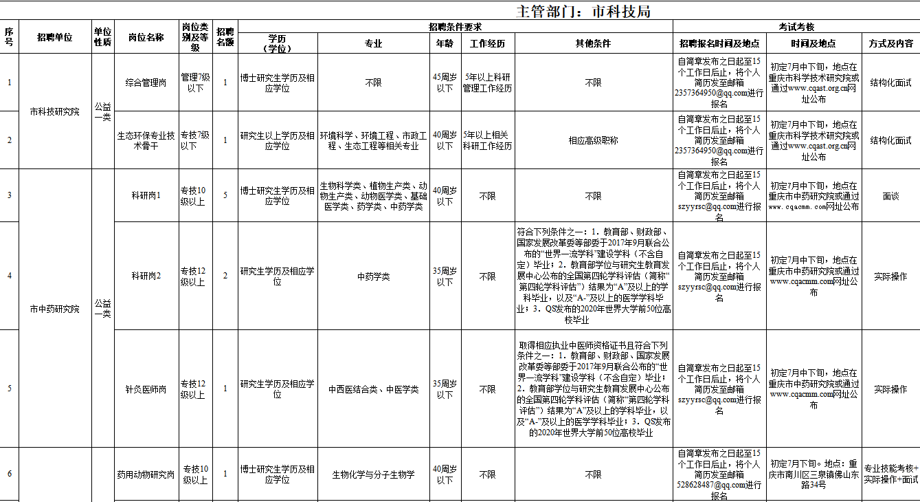 附件下載:2020上半年重慶市屬事業(yè)單位考核招聘職位表下載