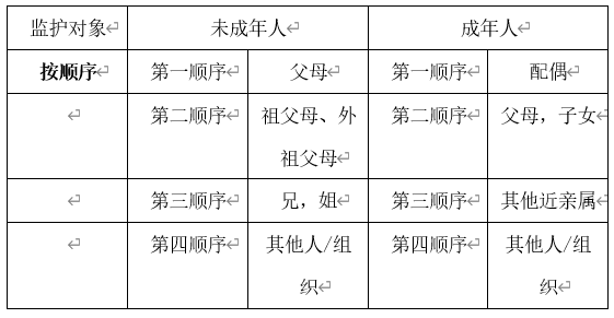 提醒注意:第四順序:其他愿意擔(dān)任監(jiān)護(hù)人的個(gè)人或者組織,但是須經(jīng)被監(jiān)護(hù)人住所地的居民委員會(huì)、村民委員會(huì)或者民政部門同意
