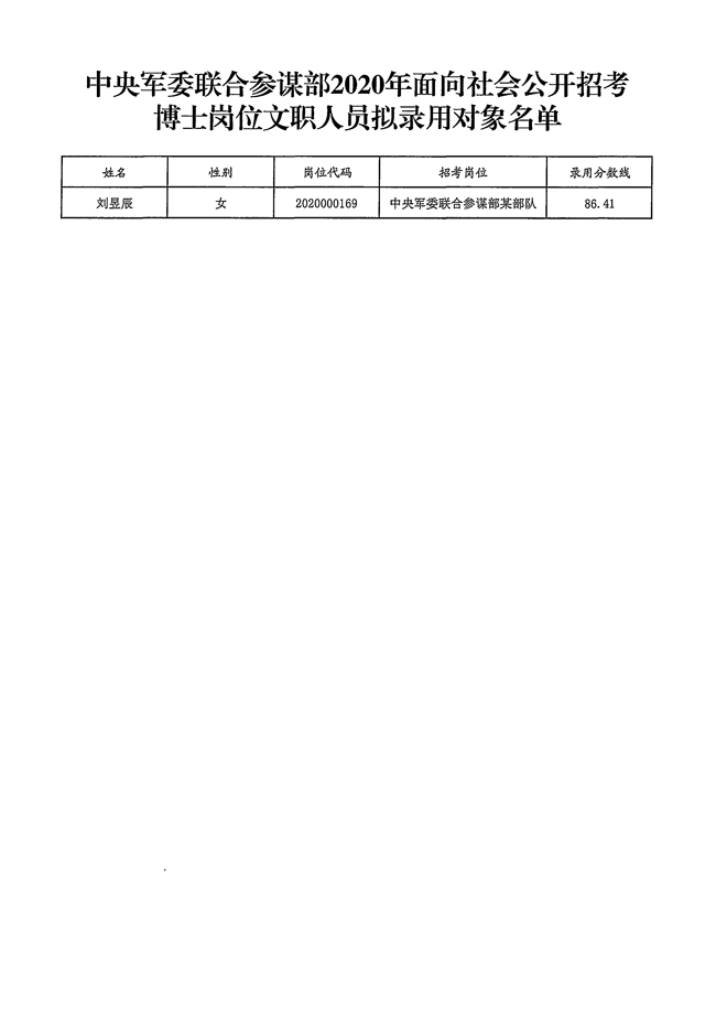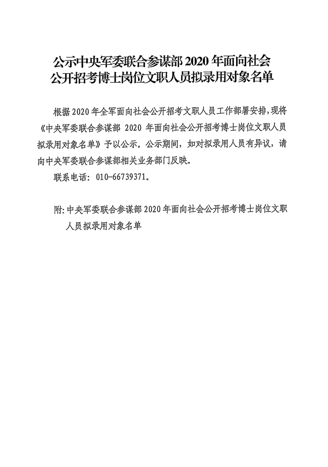 公示中央軍委聯(lián)合參謀部2020年面向社會 公開招考博士崗位文職人員擬錄用對象名單