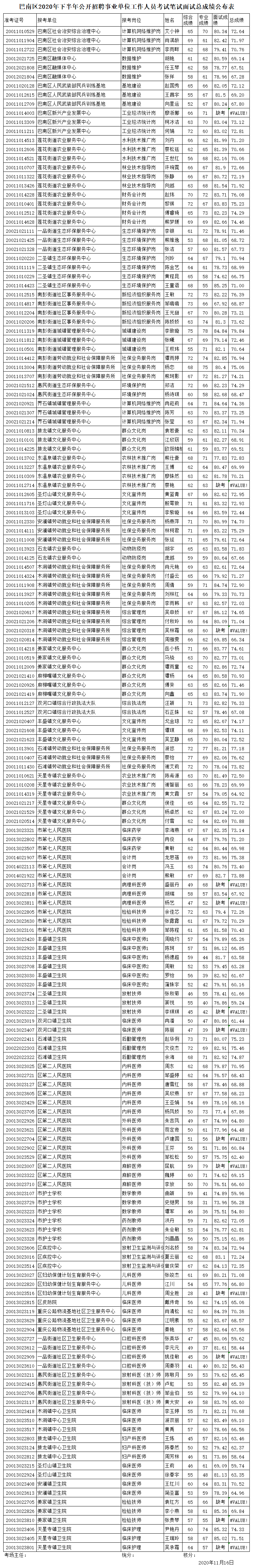 【導(dǎo)語(yǔ)】2020年下半年巴南區(qū)事業(yè)單位招聘筆試面試總成績(jī)公示現(xiàn)已發(fā)布,新公教育 為廣大考生整理此次公告內(nèi)容如下,望各位考生及時(shí)查看切勿錯(cuò)過(guò)報(bào)名時(shí)間。新公教 育為報(bào)考重慶事業(yè)單位考生提供備考資料、輔導(dǎo)用書(shū)、真題講義、筆試課程等內(nèi)容, 歡迎各位考生加入備考QQ群 663261430一起學(xué)習(xí)!