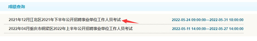2021年下半年江北區(qū)事業(yè)單位公開招聘考試成績查詢?nèi)肟?br /> 點擊進(jìn)入↓↓↓
