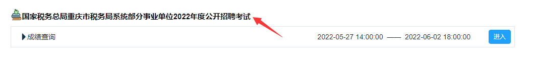 2022年度國家稅務(wù)總局重慶市稅務(wù)局事業(yè)單位公開招聘考試成績查詢?nèi)肟?br /> 點擊進入↓↓↓
