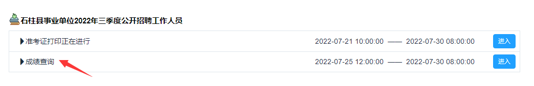 2022年三季度重慶市石柱縣事業(yè)單位公開招聘考試成績查詢?nèi)肟?br /> 點擊進入↓↓↓
