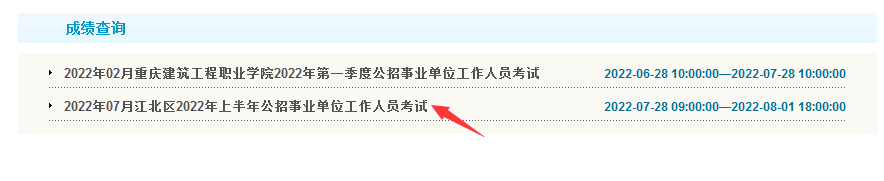2022年上半年重慶市江北區(qū)事業(yè)單位公開招聘考試成績查詢?nèi)肟?br /> 點擊進入↓↓↓