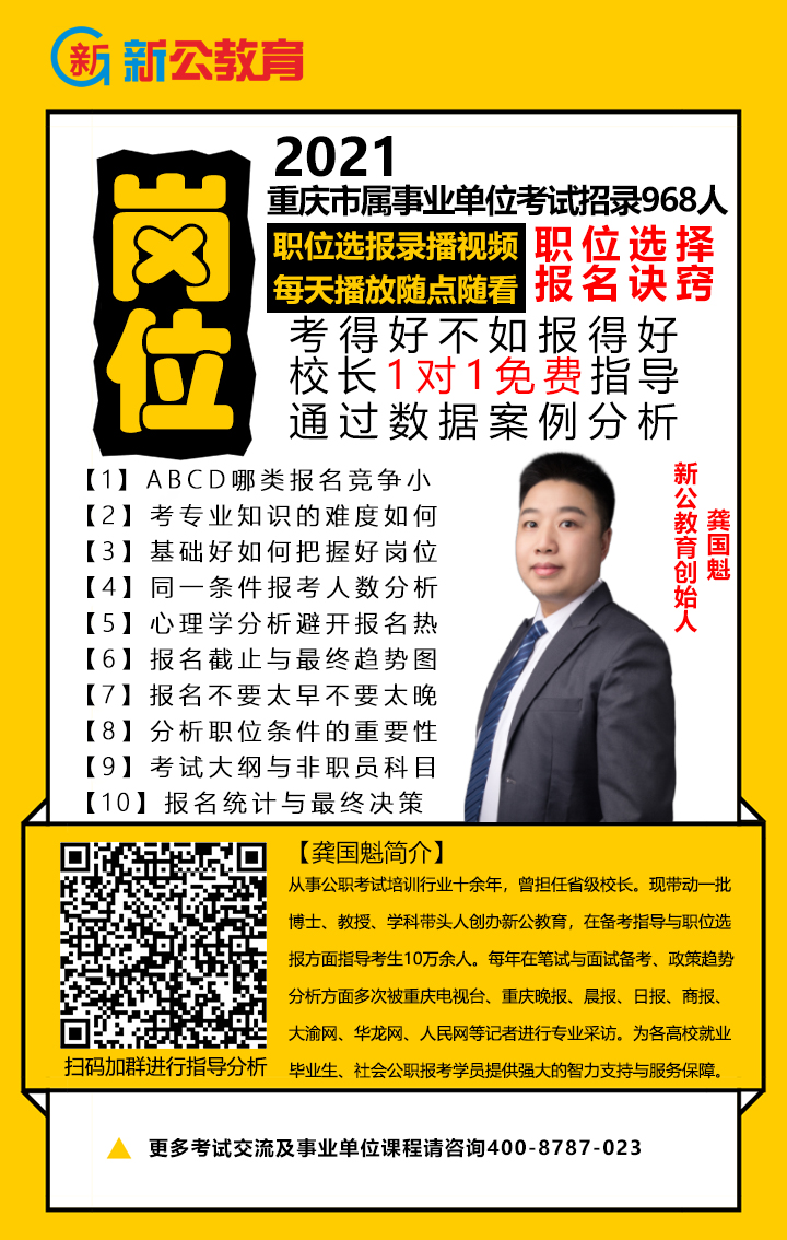 新公教育為你提供更多考試資訊和招聘公告可關(guān)注微信公眾號(hào)【新公教育(cqxgjy)】查看!