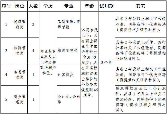 經(jīng)區(qū)國(guó)資中心批準(zhǔn),重慶璧山文化旅游產(chǎn)業(yè)有限公司(以下簡(jiǎn)稱“文旅公司”)現(xiàn)面向社會(huì)公開(kāi)招聘勞務(wù)派遣員工。