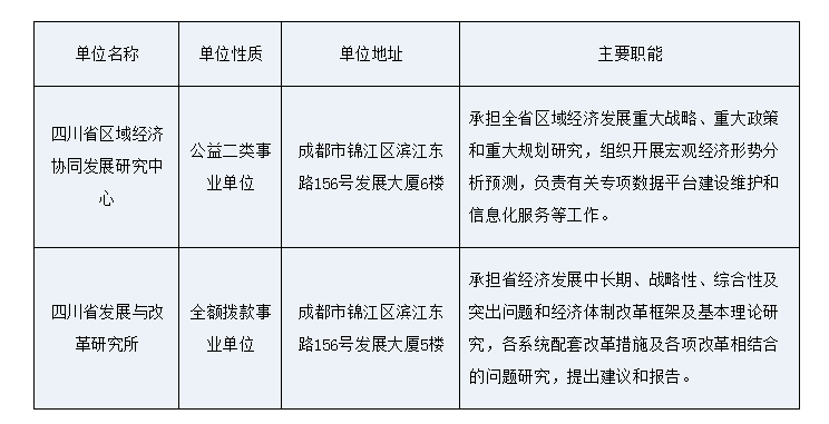 根據(jù)《事業(yè)單位人事管理?xiàng)l例》《事業(yè)單位公開招聘人員暫行規(guī)定》和《四川省省屬事業(yè)單位公開招聘工作人員實(shí)施細(xì)則(試行)》等有關(guān)規(guī)定,四川省發(fā)展和改革委員會擬面向社會公開招聘工作人員補(bǔ)充到四川省區(qū)域經(jīng)濟(jì)協(xié)同發(fā)展研究中心、四川省發(fā)展與改革研究所工作。現(xiàn)將公開招聘有關(guān)事項(xiàng)公告如下(本公告由四川省發(fā)展和改革委員會同時在四川省人力資源和社會保障廳官網(wǎng)〔http://rst.sc.gov.cn/,下同〕和四川省發(fā)展和改革委員會門戶網(wǎng)站〔http://fgw.sc.gov.cn/,下同〕上發(fā)布)。