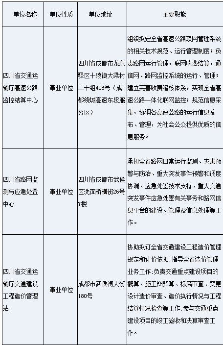 根據(jù)《事業(yè)單位人事管理?xiàng)l例》、《事業(yè)單位公開招聘人員暫行規(guī)定》和《四川省省屬事業(yè)單位公開招聘工作人員實(shí)施細(xì)則(試行)》等有關(guān)規(guī)定,四川省交通運(yùn)輸廳擬面向社會(huì)公開招聘部分工作人員補(bǔ)充到四川省路網(wǎng)監(jiān)測(cè)與應(yīng)急處置中心等7個(gè)直屬事業(yè)單位工作。現(xiàn)將公開招聘有關(guān)事項(xiàng)公告如下(本公告由四川省交通運(yùn)輸廳同時(shí)在四川省人力資源和社會(huì)保障廳官網(wǎng)[rst.sc.gov.cn ,下同]“人事考試”專欄和四川省交通運(yùn)輸廳網(wǎng)站[jtt.sc.gov.cn ,下同]上發(fā)布)。