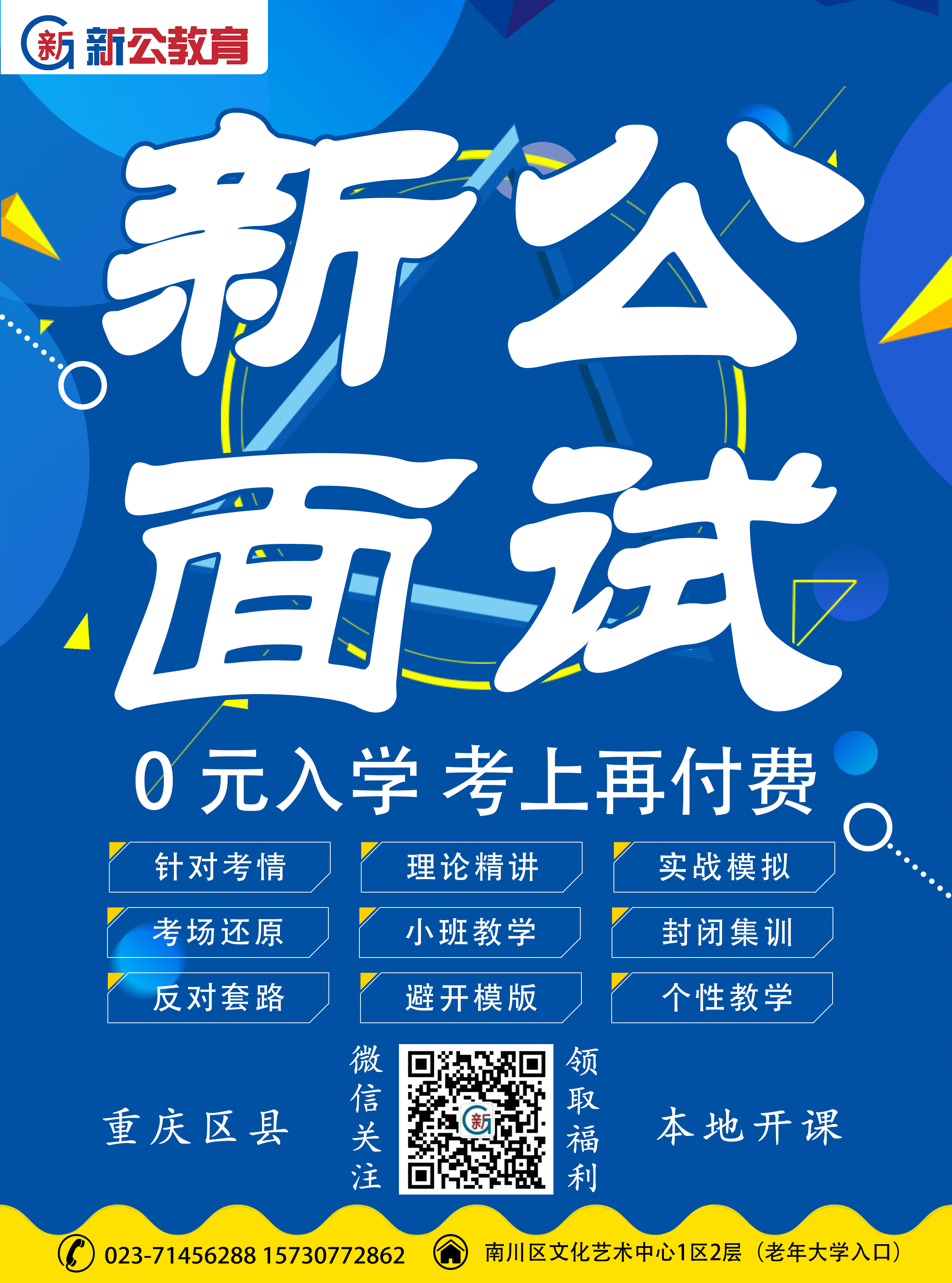 新公教育為你提供更多考試資訊和招聘公告可關注微信公眾號【新公教育(cqxgjy)】查看!