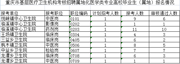 報考《2020年重慶市基層醫(yī)療衛(wèi)生機構考核招聘屬地化醫(yī)學類專業(yè)高校畢業(yè)生公告》的崗位,據筆試總成績從高分到低分按照1:2比例確定面試人選,若最后一名面試人選成績出現并列,則并列進入面試。