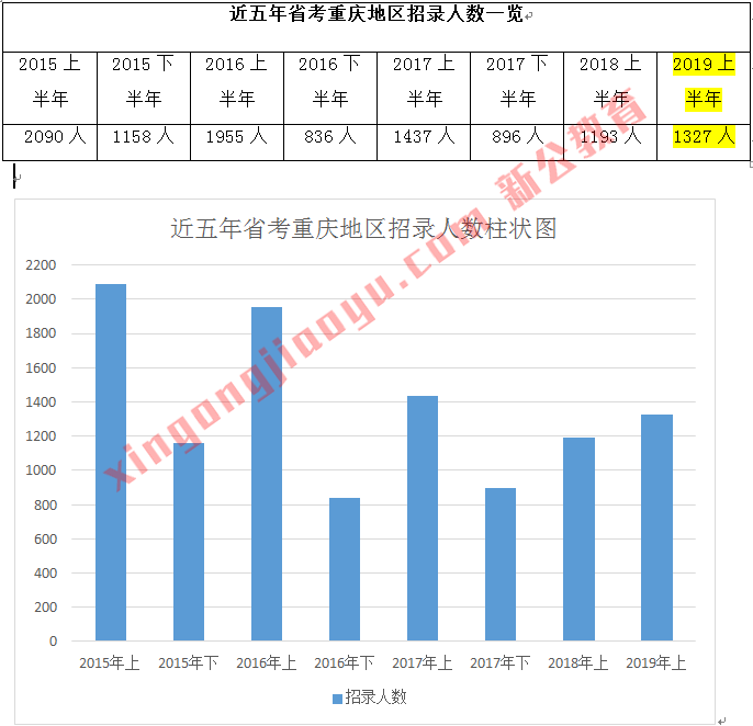 1、相比2018年省考重慶地區(qū)招錄人數(shù)增加了134人。