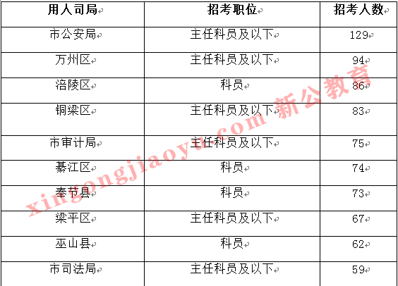 3、招錄人數(shù)排名前10的部門與職位為重慶市公安局最多