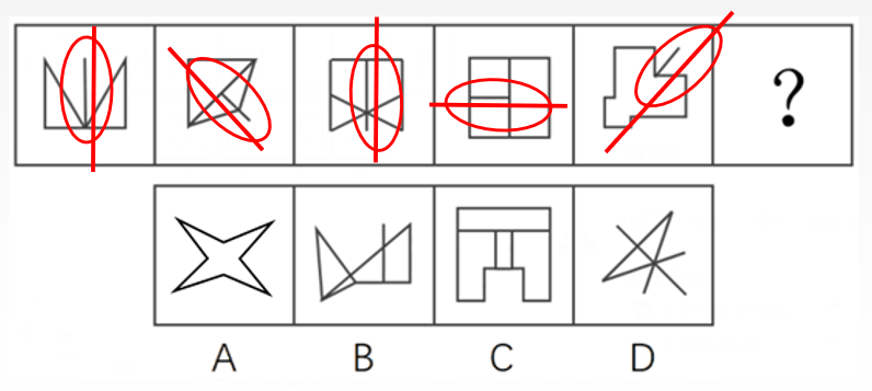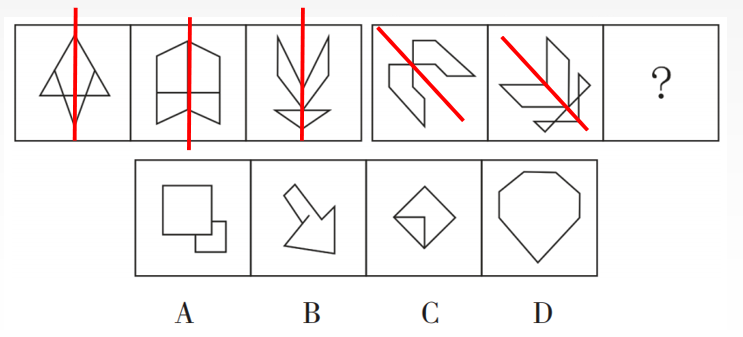 以上四種考法,是對稱性最常見、也是最重要的四種考法。如何能夠更快速的識別和解答對稱性題目呢?以上四種考法關鍵點在于對稱軸,所以一旦發(fā)現(xiàn)題干都是軸對稱圖形,需要畫出圖形所有的對稱軸,即可快速判斷是哪一種考法。下面,我們用兩道例題來具體演習這種解題方法。