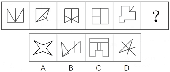 2.根據(jù)圖形規(guī)律,填入問號處最適合的一項是( )。